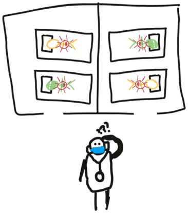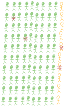 “لنضرب مثلا: في بلد من البلدان، يعيش ١٠٠٠ شخص. وبما أن المرض يصيب ٢٪ من الناس تقريبا، فإنّ نحو ٢٠ شخصا من هؤلاء الألف مصاب بالمرض، وال٩٨٠ الآخرون معافون. نحن طبعا لا نعلم بالتحديد من المصاب ومن المعافى