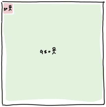 “لنفترض أن بلدا فيه ١٠٠ شخص، ٩٠ منهم تلقوا اللقاح، وال ١٠ الآخرون لم يتلقوه. ولنفترض أيضا أن احتمال الإصابة لمن لم يتلقّ اللقاح هو واحد من كل خمسة، أي ٢٠٪، وأن اللقاح يخفض احتمال الإصابة تسع مرات، أي أن احتمال الإصابة لمن تلقى اللقاح هو نحو ٢.٢٪.”